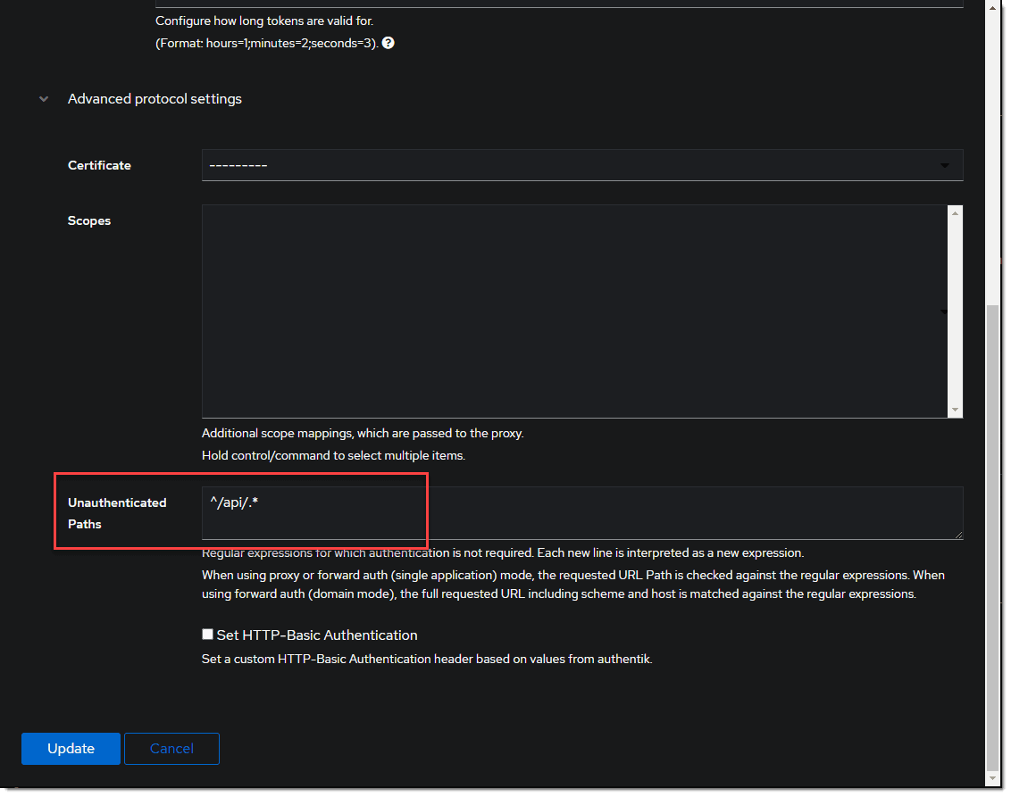 Auth Proxy Header Name: X-authentik-username Auth Proxy Whitelist: your network subnet in CIDR notation IE 10.0.0.0/8 Auth Proxy Header Name for Email: X-authentik-email Logout URL: /outpost.goauthentik.io/sign_out
